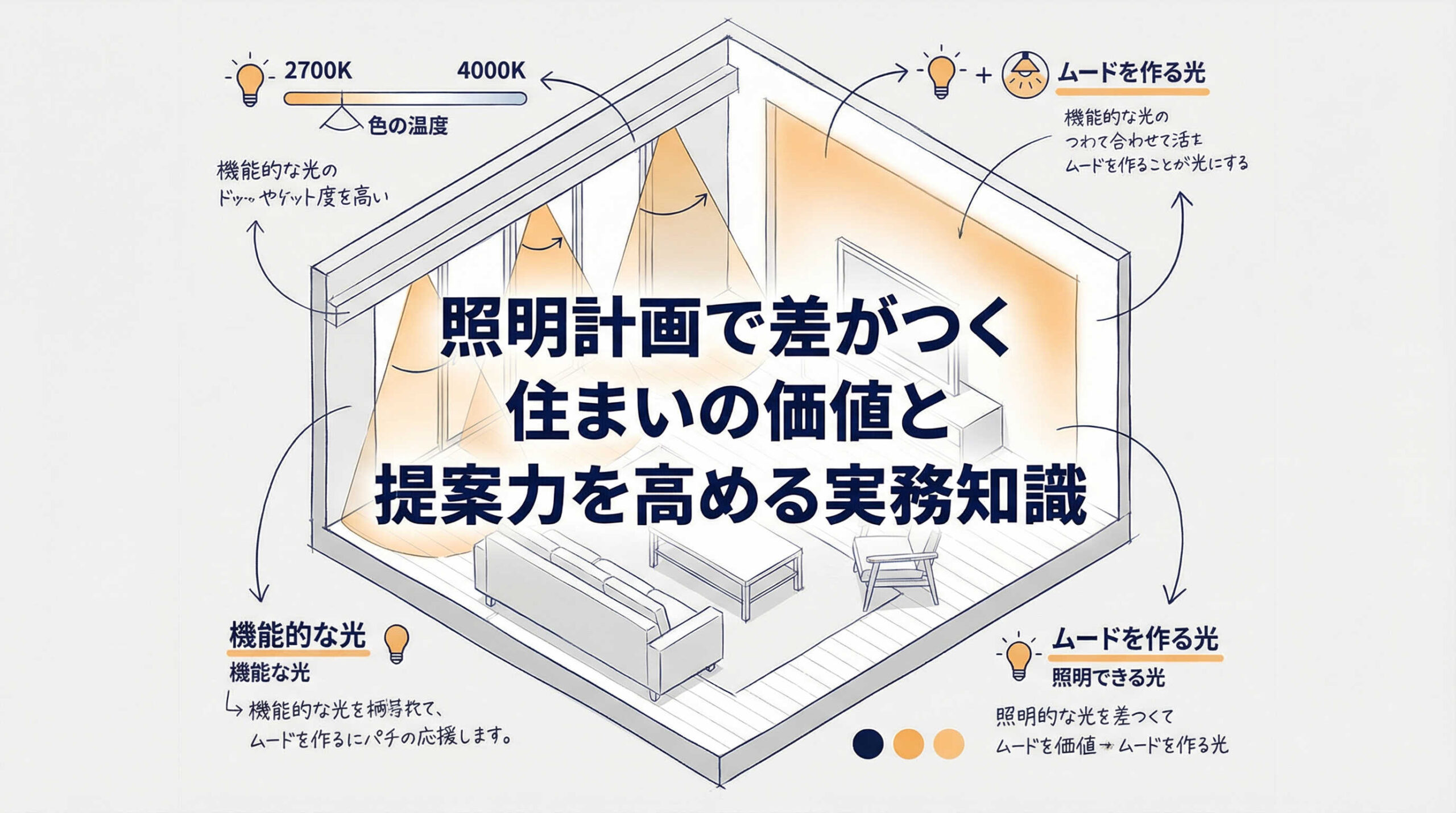 しかし、実務の現場では、間取りや内装材の選定に比べて照明計画の優先順位が低くなりがちであったり、施主への提案が感覚的なものに留まってしまったりすることも少なくありません。適切な照明計画は、物件の資産価値を高めるだけでなく、競合物件との明確な差別化要因となり得ます。